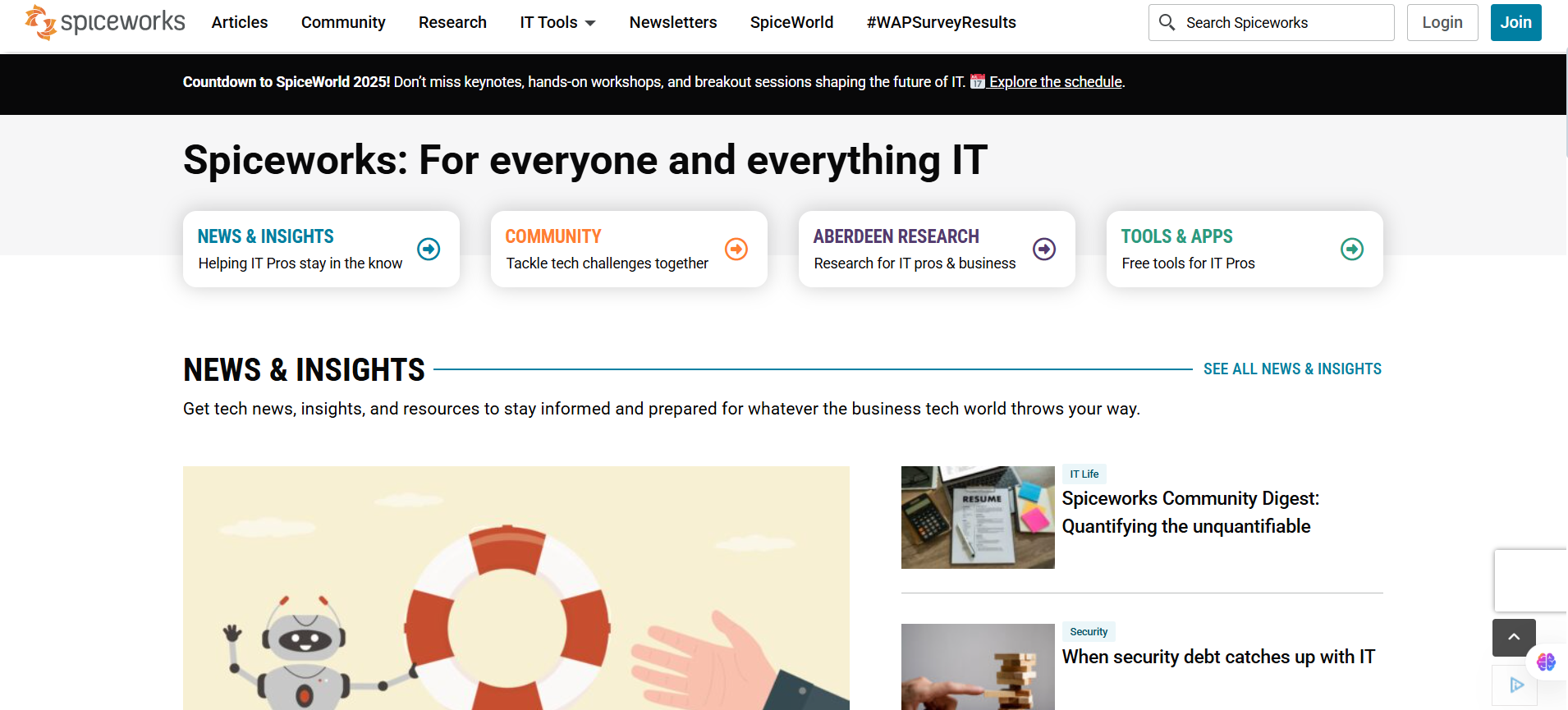 Spiceworks offers a no-frills, free-forever IT asset management system that is ideal for small to medium-sized businesses or teams with basic asset tracking demands and limited budgets. It provides core functionality like device discovery, inventory management, and help desk integration, though it is supported by ads in its free version.