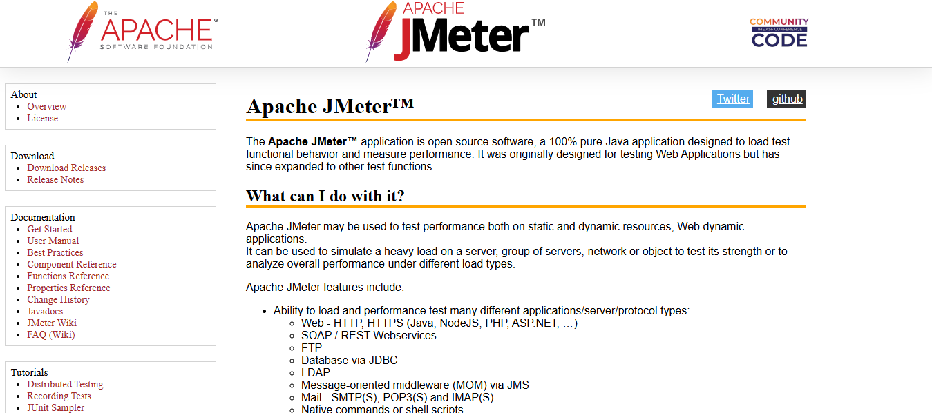 Apache JMeter is an open source Java application designed to load test functional behavior and measure the performance of web applications. It can be used to simulate heavy loads on servers, networks, or objects to analyze overall strength and performance under different stress types and concurrent user scenarios.