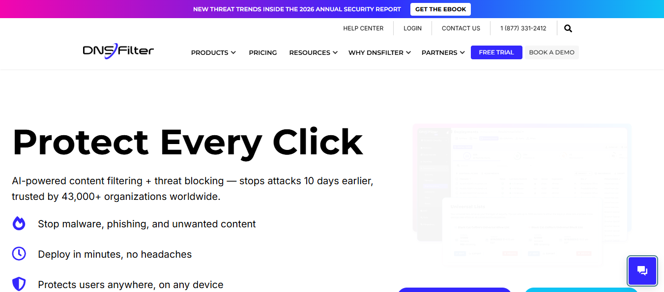 DNSFilter is a cloud based security platform that uses the Domain Name System to block malicious websites and filter content. It leverages artificial intelligence to identify threats in real time, providing an agile defense layer that protects users from phishing, malware, and inappropriate content across various networks and devices.