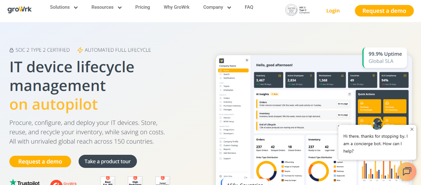 For IT professionals, having the right tools means more than monitoring dashboards and ticketing systems. Managing devices, tracking IT assets, and supporting remote users at scale require operational visibility and control beyond traditional software. GroWrk supports IT teams by combining global device lifecycle management with centralized asset visibility, helping organizations streamline operations across distributed environments in 150+ countries.