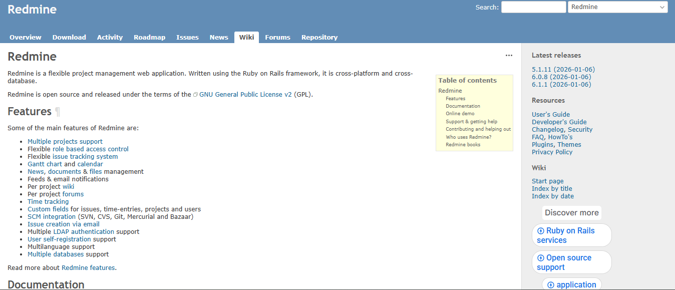 Redmine is a flexible, open source web application built for project management and issue tracking. Written using the Ruby on Rails framework, it allows users to manage multiple projects simultaneously while providing robust tools for bug tracking, documentation, and calendar integration in a highly configurable environment.